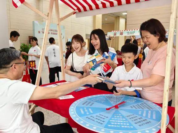 法律知识答题区吸引众多市民扫码挑战赢取非遗盖章手账等文创奖品。