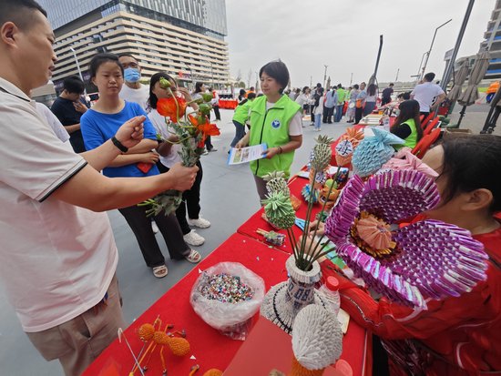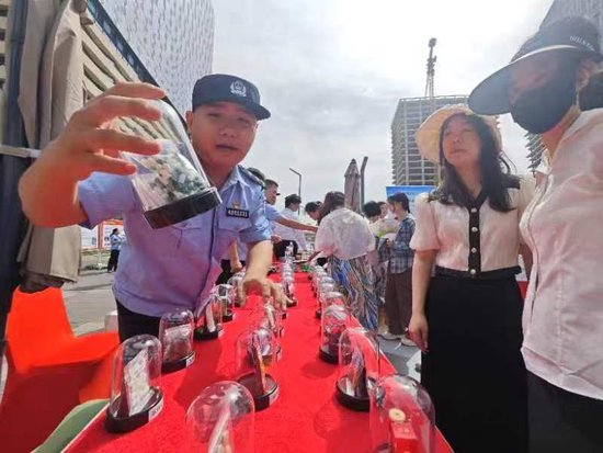 除了非遗文化项目区,现场还有禁毒游戏通关区、法律知识咨询区、仿真毒品展示区、禁毒展板区、宣传资料发放区。禁毒民警和禁毒社工耐心解答市民的疑问,分享禁毒工作经验和成果,让大家更加直观地了解毒品的危害性和禁毒工作的重要性。
